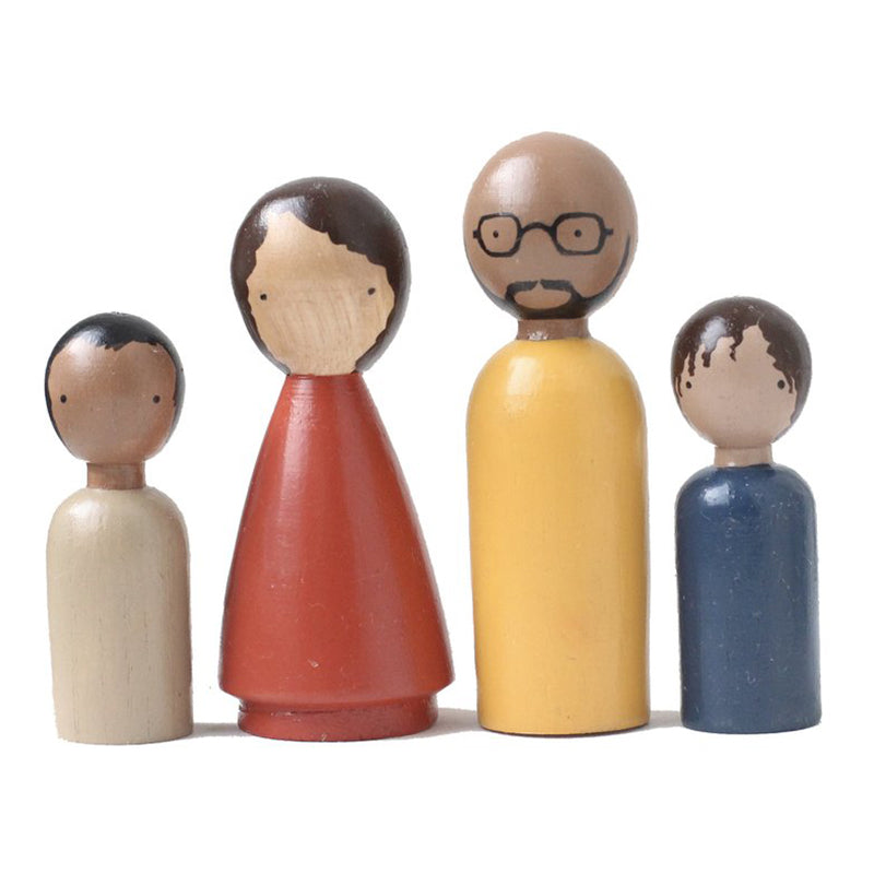 Urapan wood is hand-sculpted on an electric lathe to craft the Modern Artists II wooden peg dolls by Goose Grease. These creations of art by Colombian artisans are expertly coated with American, non-toxic water-based paints.