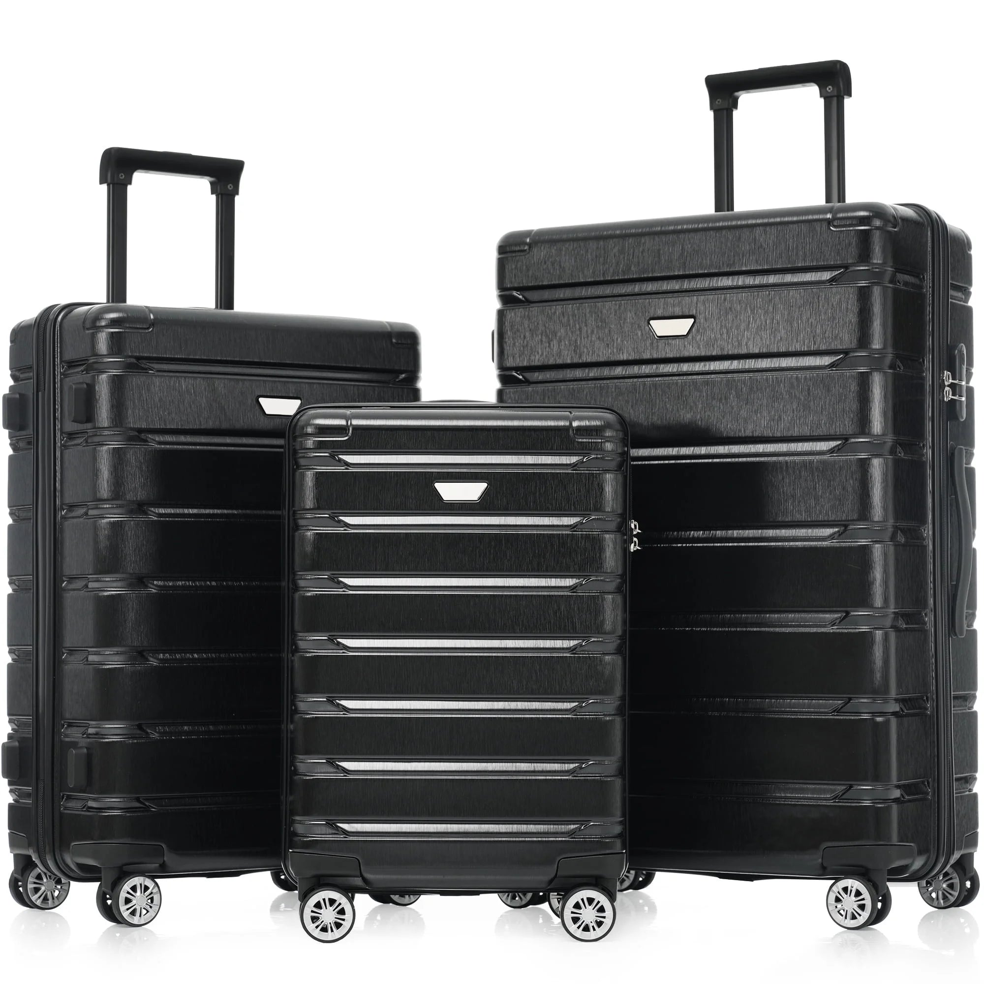 Luggage Sets 3 Piece Hardshell feature on high quality ABS +PC material and exquisite texture surface with gloss showing . Available in a variety of sizes to meet different travel needs, such as weekend trips and long-distance trip. The interior space in suitcase is spacious with zipper net bag, easy to classify and store personal items. Equipped with silent universal wheel 360° free steering, enjoy smooth and quiet journey whether flat road or complex terrain. Features: 1. Luggage set includes: 20" checked luggage ,24" suitcase, 28" suitcase 2. ABS +PC material 3. Corner protection design & 360° silent dual wheels 4. TSA Lock