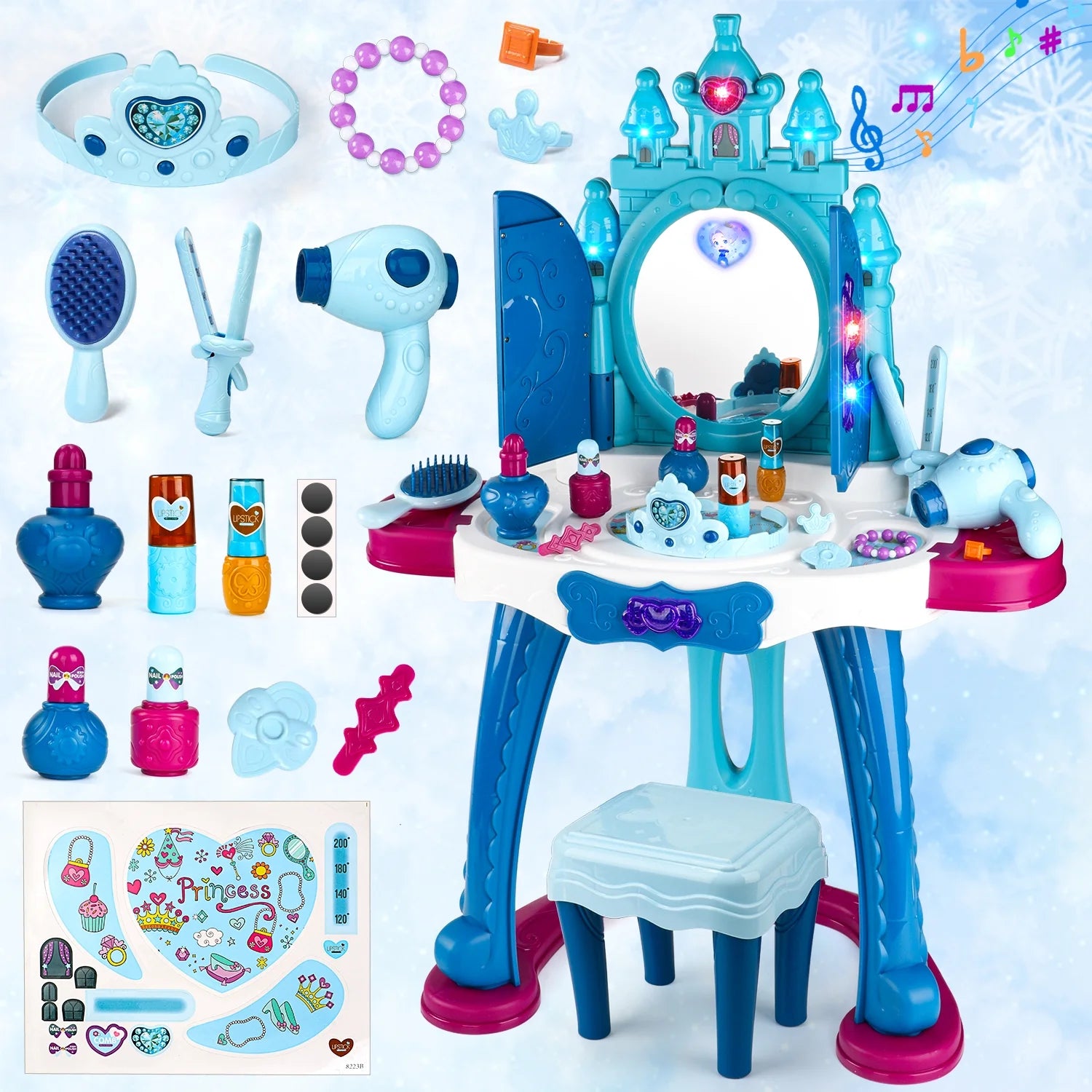 Girl toy vanity table set gives you endless fun and imagination, encourages socializing, and trains fine motor skills! Be your own little designer!
