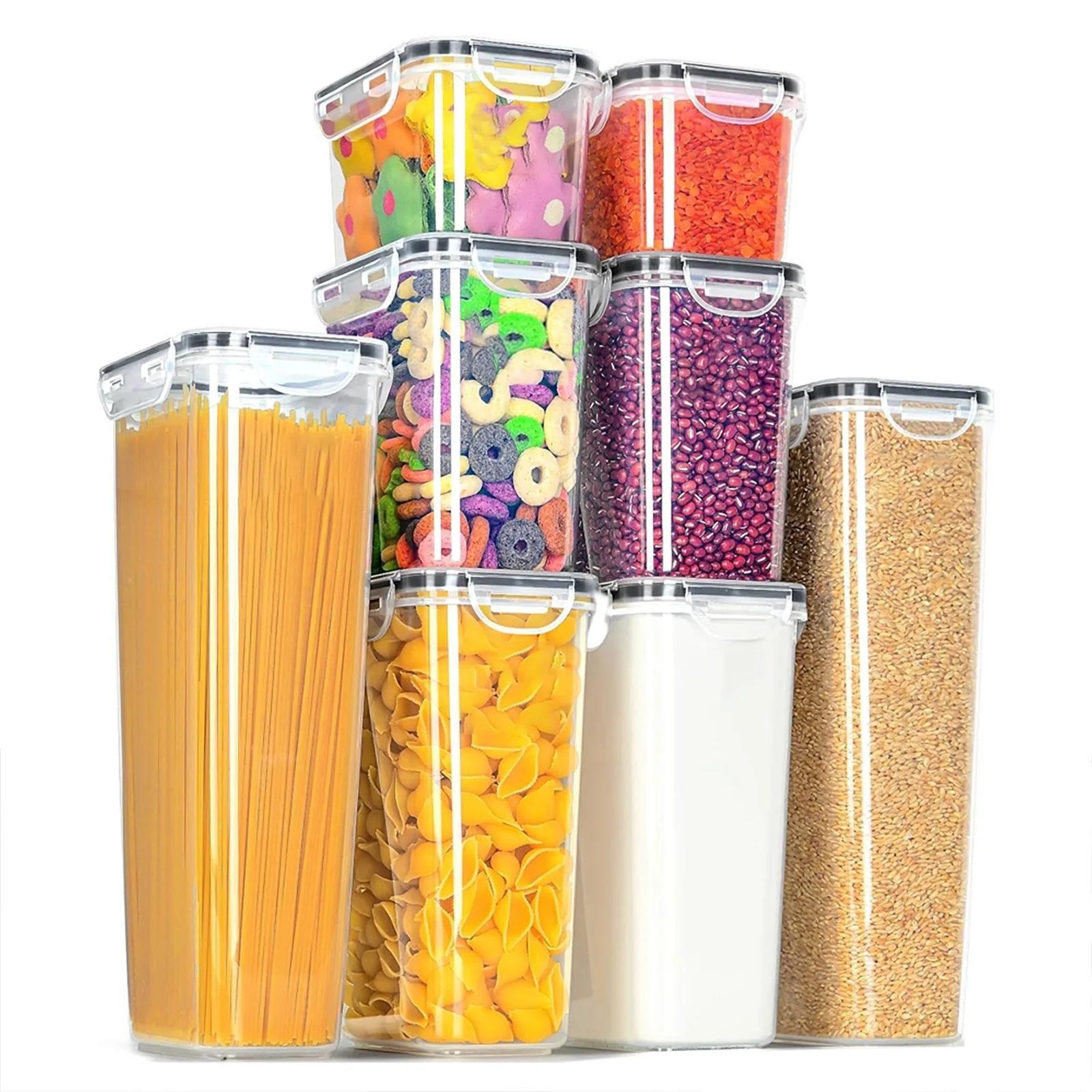 - Kitchen & Pantry Organization: Our 8 Pack Airtight food storage containers can meet all your food storage needs. These pantry storage container set are designed to be stacked and nested to save pantry space.