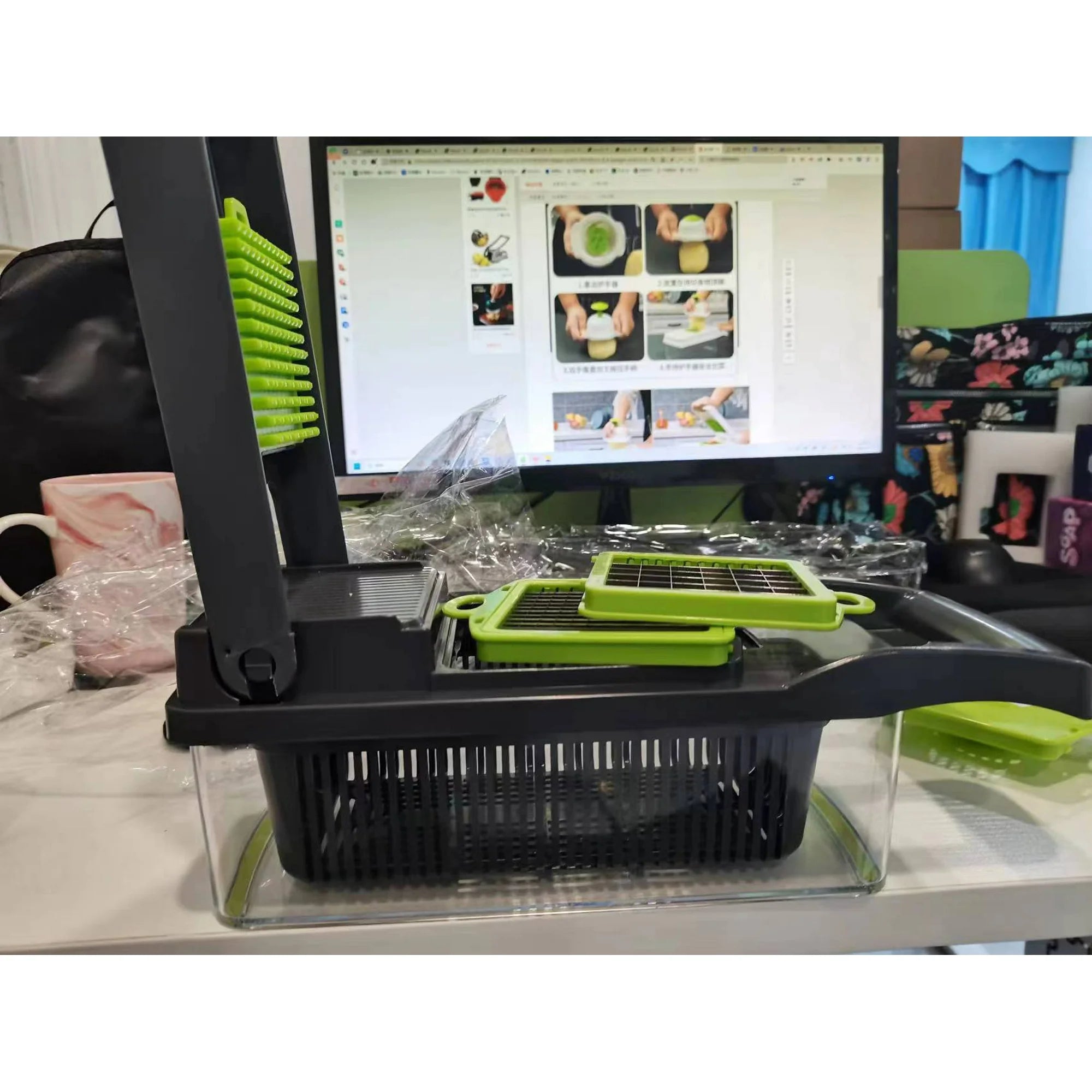 - 【SUPERIOR QUALITY】- Vegetable chopper multifunctional slicer is made with premium materials like grade 420 stainless steel blades and food-grade materials. The sharp stainless steel blades can quickly chop most types of vegetables and fruits for all your slicing, dicing, grating & shredding needs. The functional kitchen gadget is a must-have tool for cooking enthusiasts.