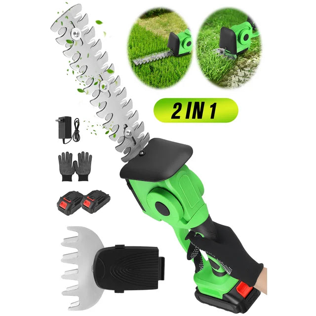 - Dedicated 2-in-1 Tool:Switch effortlessly between grass shear and hedge trimmer functionalities with the blade release buttons. The short blade (Width of 6.81 Inches) is perfect for cutting grass and small sections of lawns, while the long blade (Length of 8.89 inches) tackles thin shoots on hedges, bushes, trees, and ornamental shrubs. The cordless design, with battery and charger included, allows for efficient lawn edging and shrub trimming.
