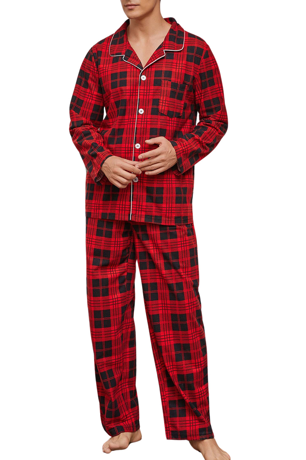 - √Classic design: The soft mens pajama sets with classic lapel and plaid design. The pjs with button front and a notch collar, chest pocket, and a variety of designs to suit any taste. Choose between blue-white plaid,red-black plaid, and Milu printed.It suitable for all ages,classic and fashionable.